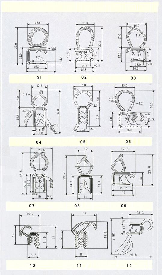 1、GB12002-89《塑鋼門窗用密封條》2、GB320 281NAF05-2000《建筑幕墻用硫化橡膠密封條》3、ISO3934(GB10712)《建筑橡膠密封墊-密封玻璃窗和鑲板的預成型實芯硫化橡膠材料-規(guī)范》4、TB 1964-87《客車門窗用密封條檢驗方法》5、TB 1444-83《內燃機車橡膠件技術條件》6、HG/T 3088-1987《車輛門窗橡膠密封條》